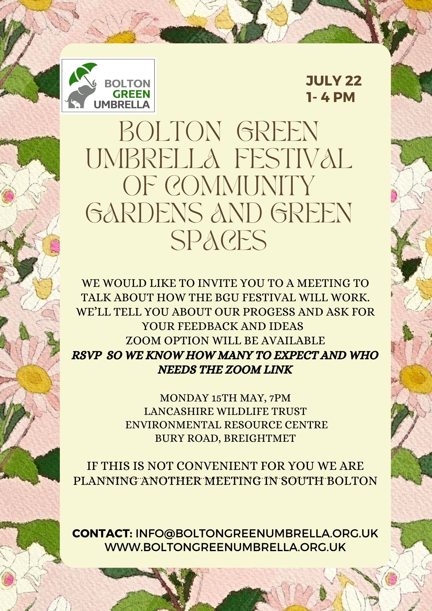 Bolton Green Umbrella was formed in August 2016 when a small number of like-minded people talked about how encouraging and motivating it was that we had at last discovered each others existence.